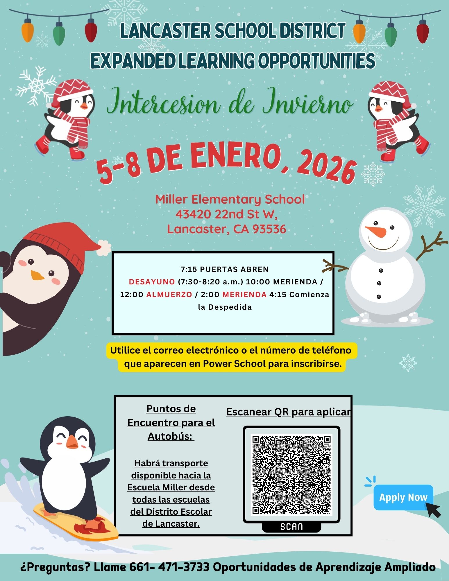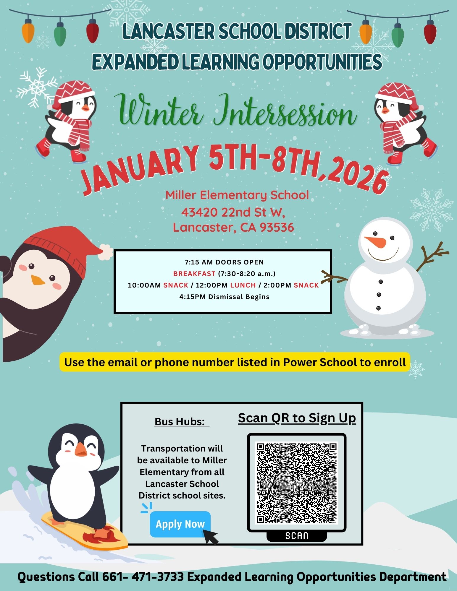 We’re excited to welcome LANCSD students to ELO’s Winter Intersession Program on January 5th-8th, 2026 at Miller Elementary!