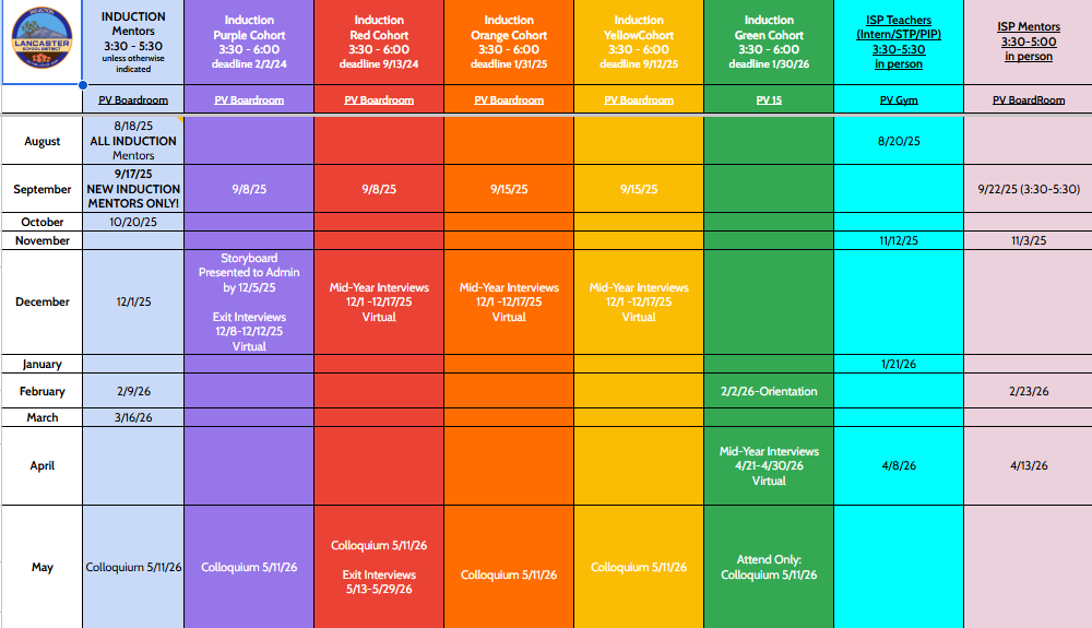 Induction Program Schedule 2025-2026