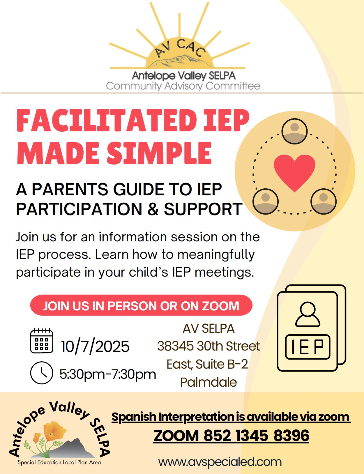 The Antelope Valley SELPA seeks to create a partnership with parents, educators, lawmakers, service providers, and others in the community with the goal of improving and protecting the education of our children with special needs